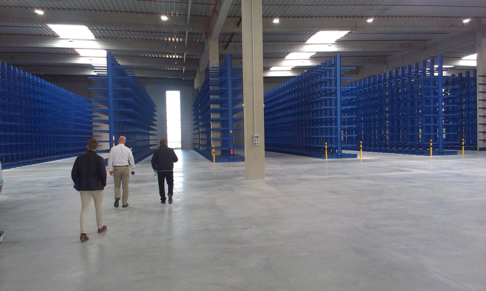 Tre timmar längre söderut i norra Bayern ligger fabriken och ett stort nybyggt lager. Produktionen är klassisk tysk stålindustri med hög finish, precision och såklart en väldigt bra kvalitet. Ett par hundra meter bredvid reser sig en nybyggd fin byggnad som ska husera Müpros nya centrallager. Vid besöket hade de första möblerna kommit på plats och i vissa rum satt redan folk och arbetade. Väl inne i lagerlokalen var det tomt på hyllorna och allt var kliniskt rent. Inom de kommande veckorna kommer varje hylla att vara fylld med skenor i olika storlekar och den enorma automatiska pallförvaringen kommer hålla plats för över 9000 pallar. Med en enkel scanning av en streckkod kan lagerpersonal snabbt få ut rätt låda eller pall och sen plocka önskat antal.